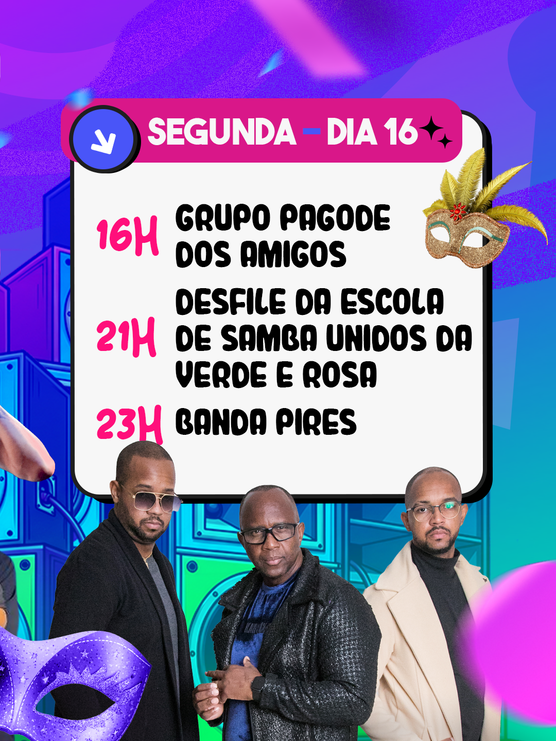 ⏰ 16h – Grupo de Pagode dos Amigos.